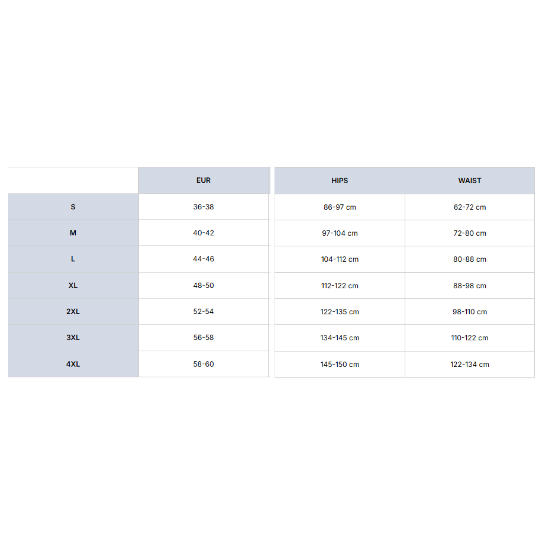 NB – Vælg størrelse ud fra din hofte- og taljeomkreds for den bedste pasform. Se størrelsesskemaet under produktbillederne.