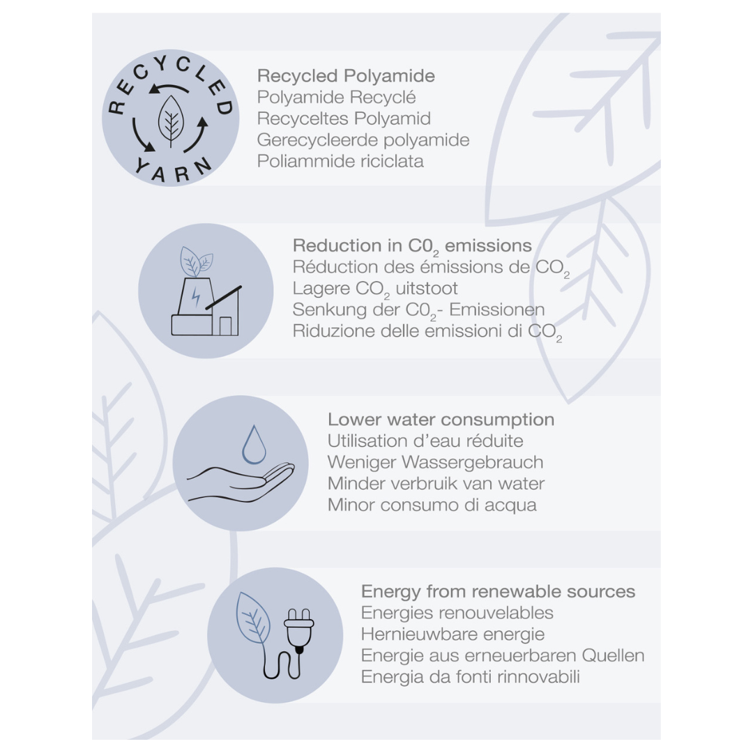 Materiale: 93% Genanvendt Polyamid, 6% elastan, 1% Bomuld