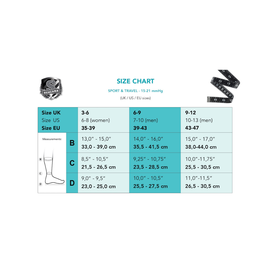 SupCare kompressions sleeves til læg giver effektiv kompression (15-21 mmHg) til læggen og hjælper med at reducere træthed og muskelsmerter. Det lette og åndbare design er ideelt til sport, løb eller triatlon, hvor foden ønskes fri. Kan bæres under almindelige strømper og sikrer optimal blodcirkulation i benet.