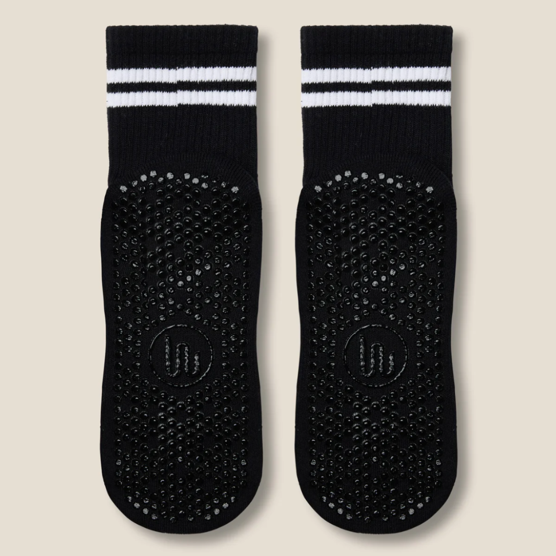 Disse komfortable skridsikre strømper er udviklet til træning, hvor stabilitet og kontrol er vigtigt. Den skridsikre sål med PVC-grip giver et sikkert fodfæste på både yogamåtten, reformer-maskinen og glatte gulve. Så der opnås bedre balance under øvelserne.