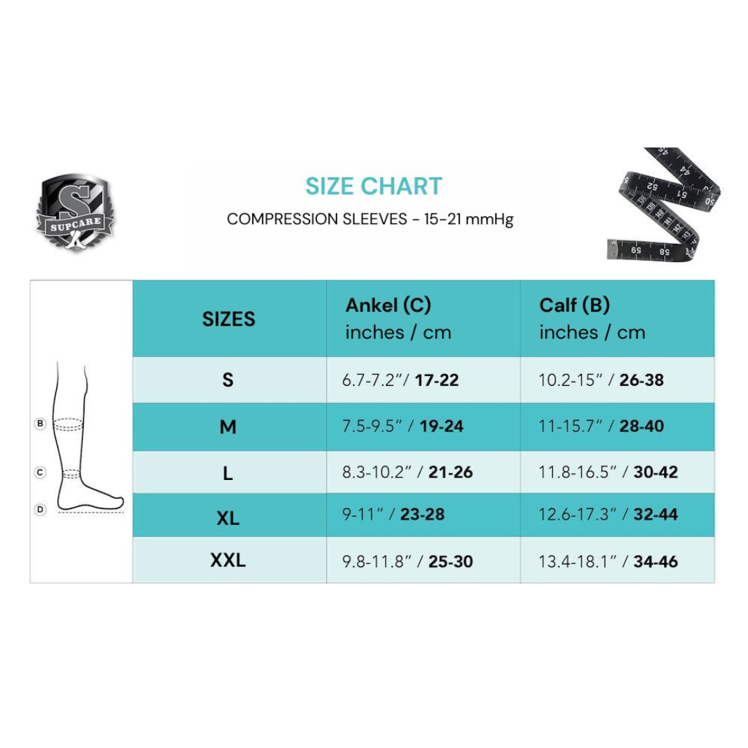Luksuriøs kompressions sleeves fra SupCare i kompressionsklasse 1 (15–21 mmHg), designet til både sport og hverdagsbrug. Sleeven kombinerer effektiv kompression med blødhed og komfort, takket være det høje indhold af bambusfibre.