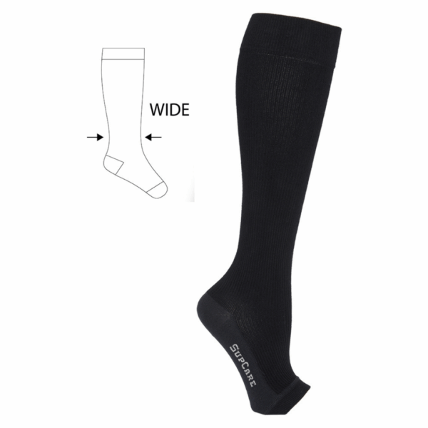 SupCare Støttestrømper, Bambus (åben tå) – Bred model